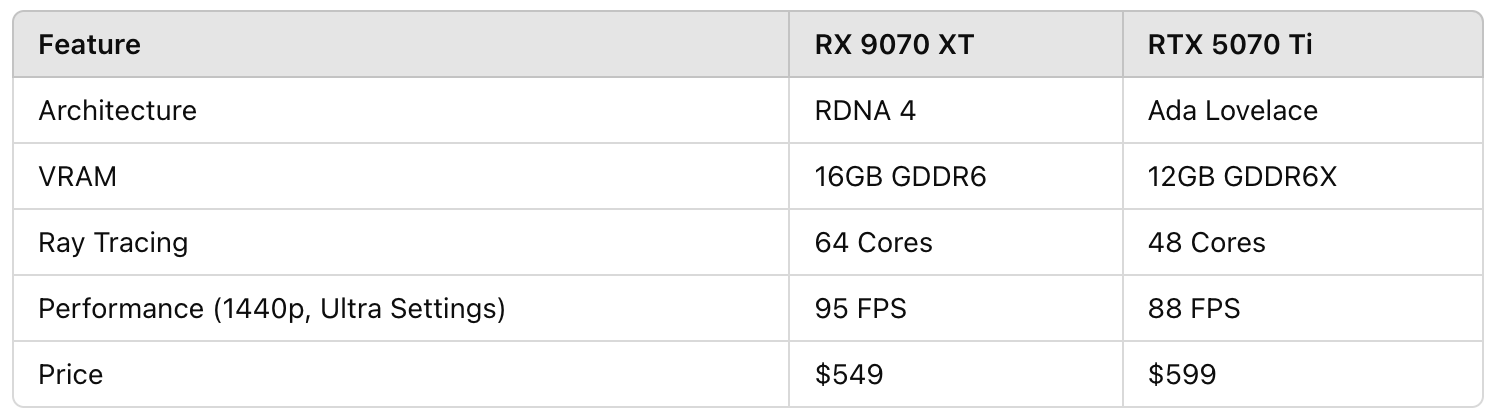 4. AMD Radeon RX 9070 XT vs Nvidia RTX 5070 Ti: A Direct Comparison